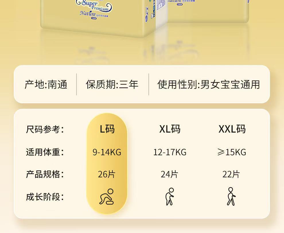 大王光羽系列拉拉裤纸尿裤NB S M L XL超薄透气天使尿不湿XXL码