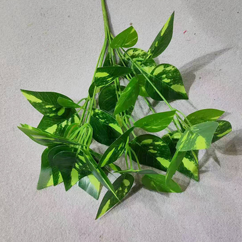 亚马逊仿真塑料叶子7叉绿植造景装饰批发绿萝地瓜胶布把束植物