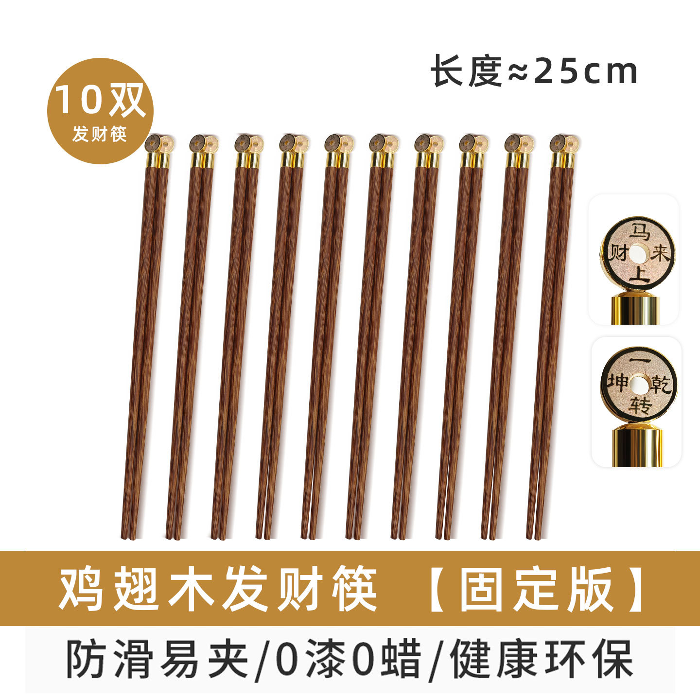 【发财筷】鸡翅木10双(固定版)白卡简装