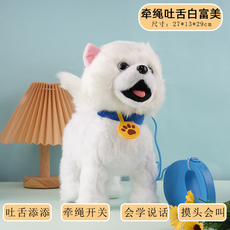 【不易脏—送4只脚套】白富美(USB直充锂电版)吐舌舔舔+牵绳遥控+触控+会学说话+摸头会叫