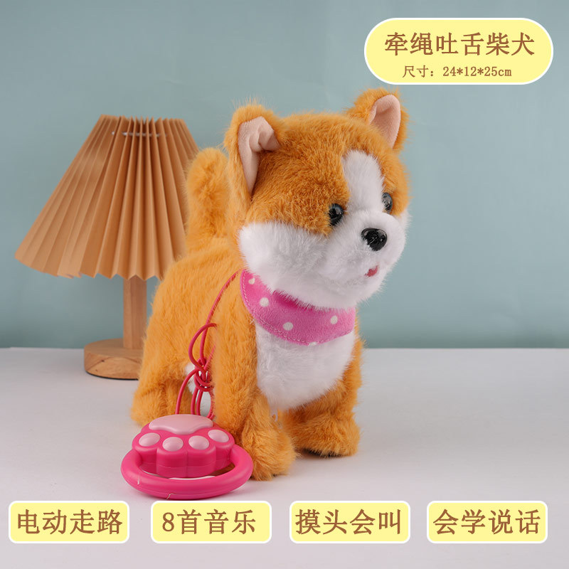 【不易脏—送4只脚套】柴犬(电池款)吐舌舔舔+牵绳遥控+触控+会学说话+摸头会叫