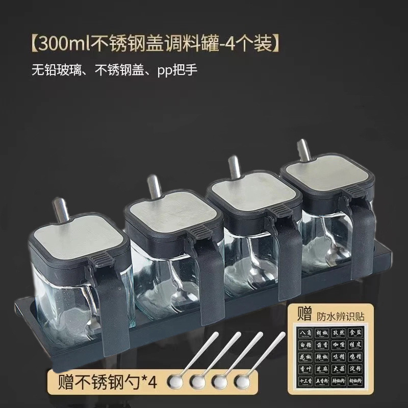 【推荐】四个调料灌+底座+调料分类贴+钢勺