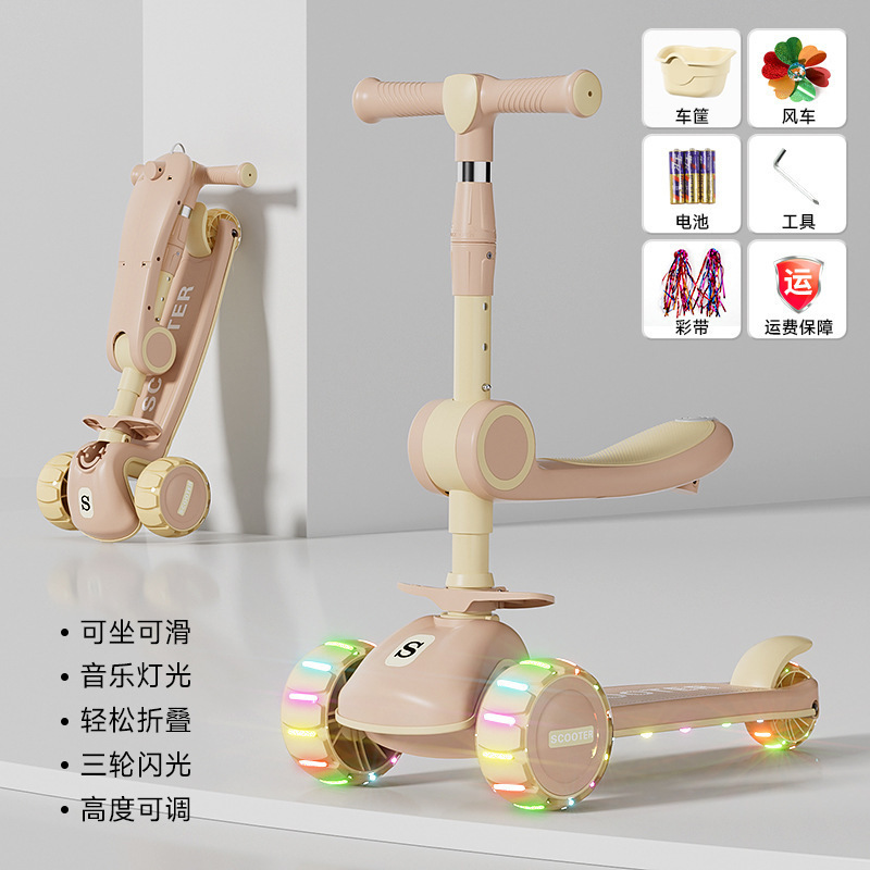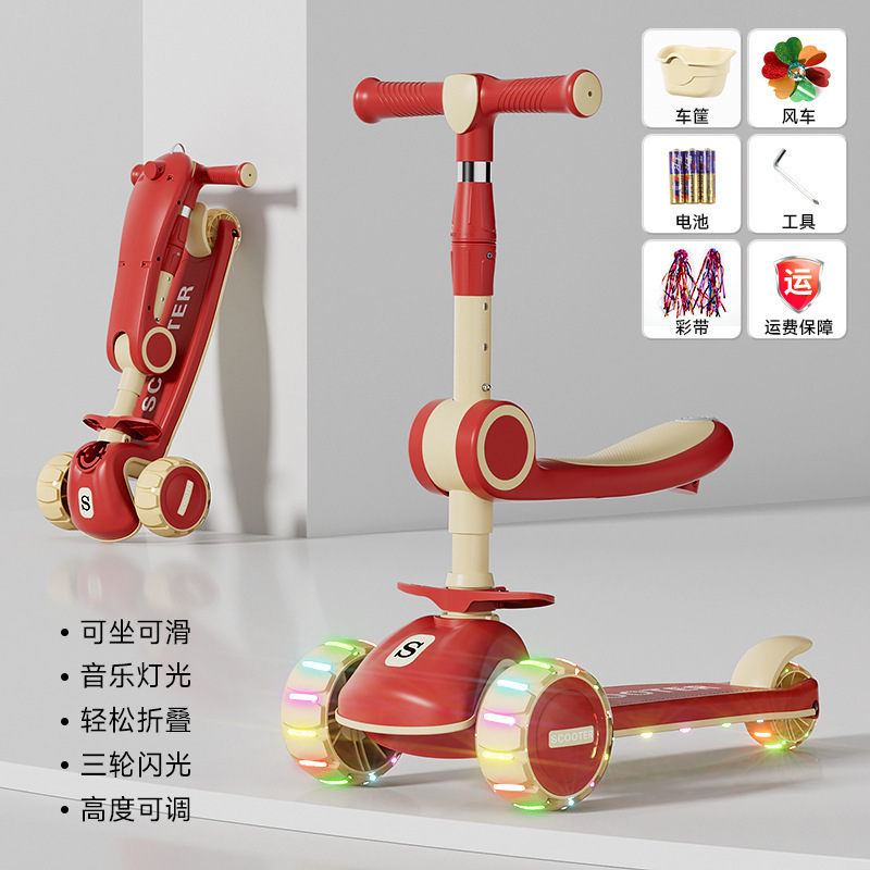 滑板车儿童13612岁以上小孩踏板折叠款男孩可坐可骑滑滑溜溜车包