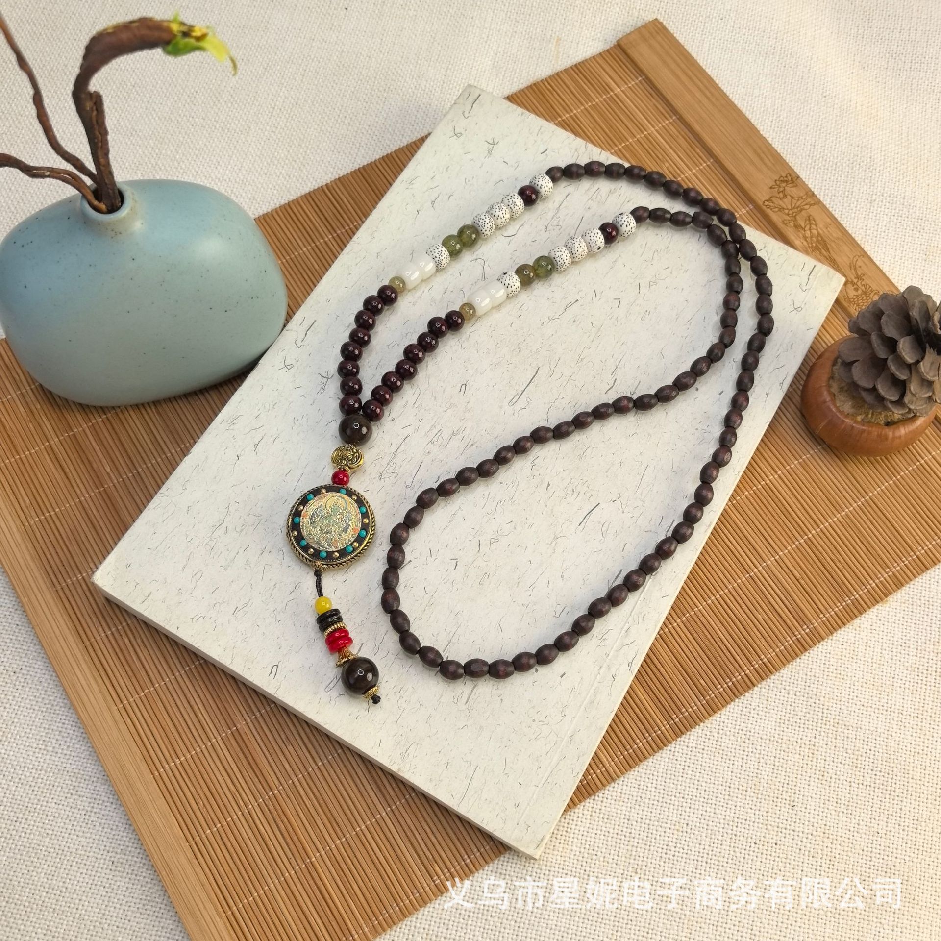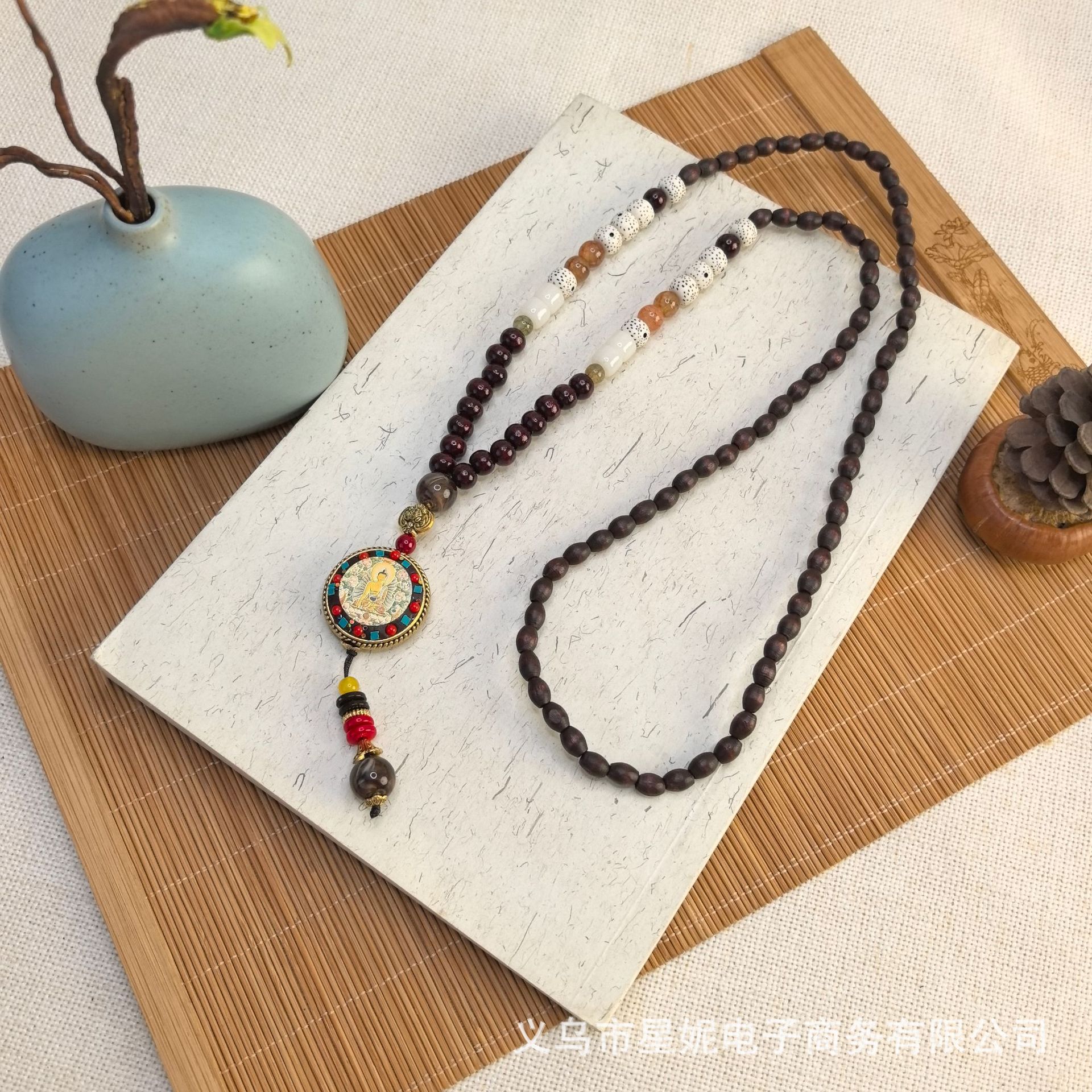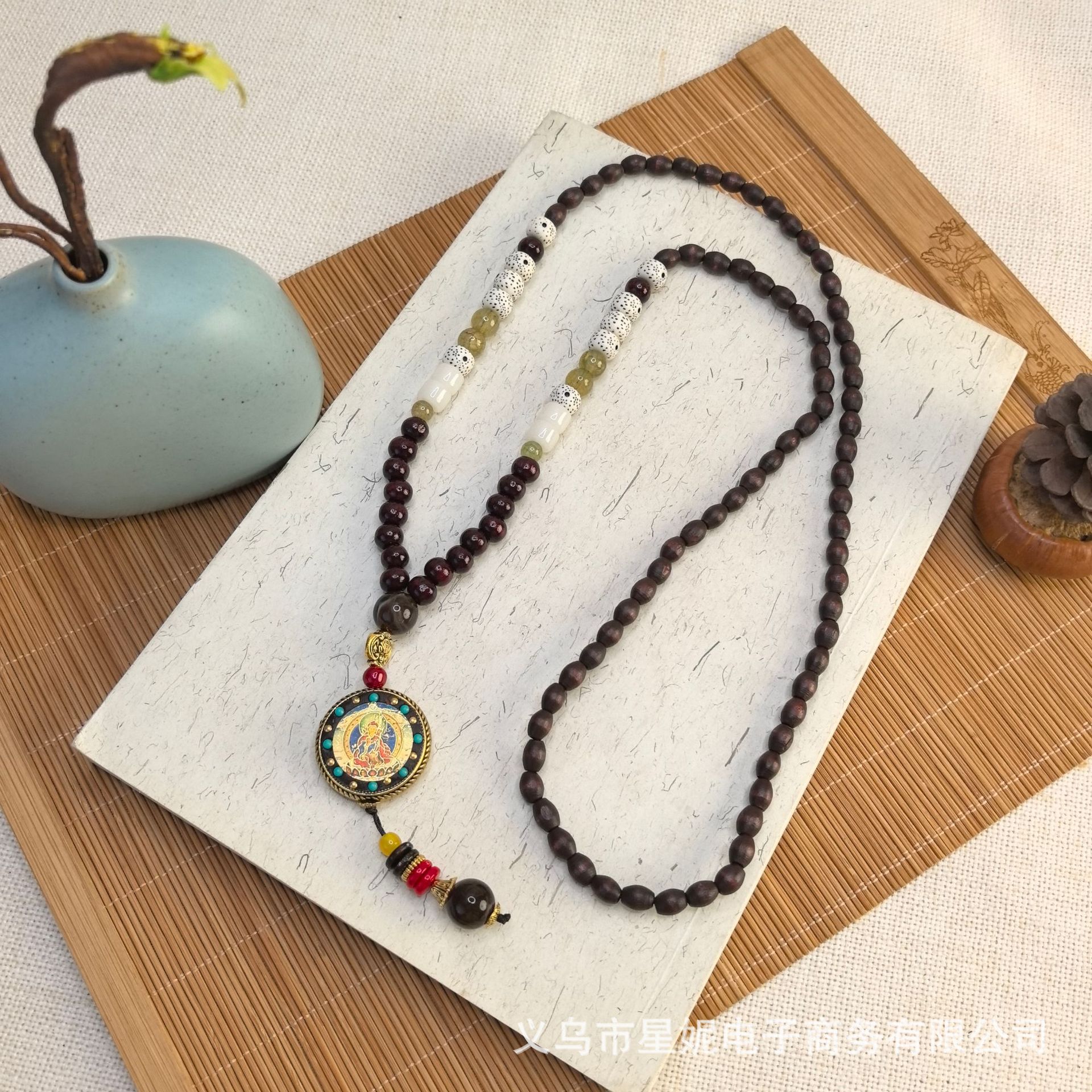 A1089唐卡木珠毛衣链a
