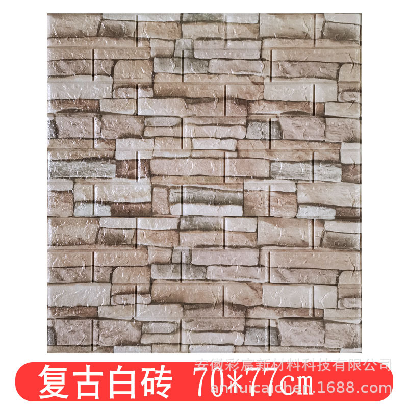 三、产品性能:质地柔软有弹性,能的起到儿童防撞的效果。3D立体砖纹,优良的材质和优雅的轮廓,创造出简约纯净的格调。加厚砖纹,起到的隔音效果。粘贴方便,背面自带背胶,只需撕下底纸,然后贴于光滑平整面即可。
