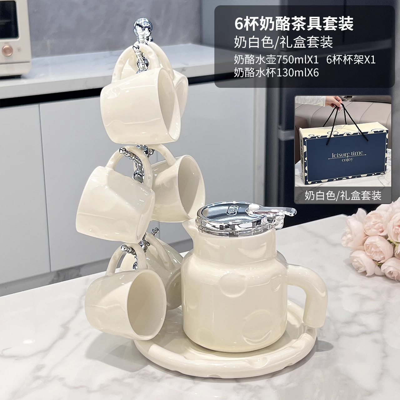 奶酪水具套装1壶6杯+托盘-奶白