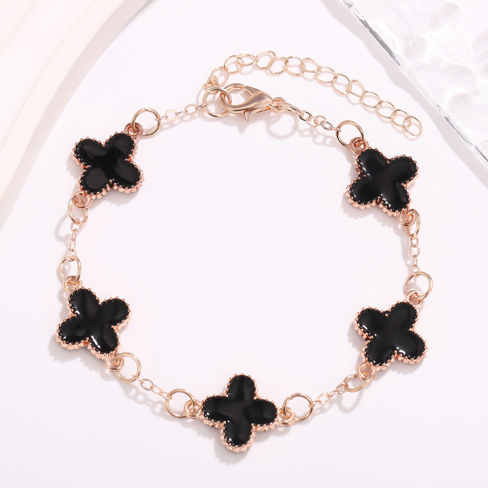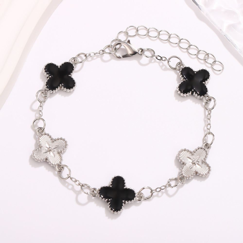 外贸专供 厂家直销爆款四叶草手链钛钢镀白K金色双面时尚轻奢五花贝母手链