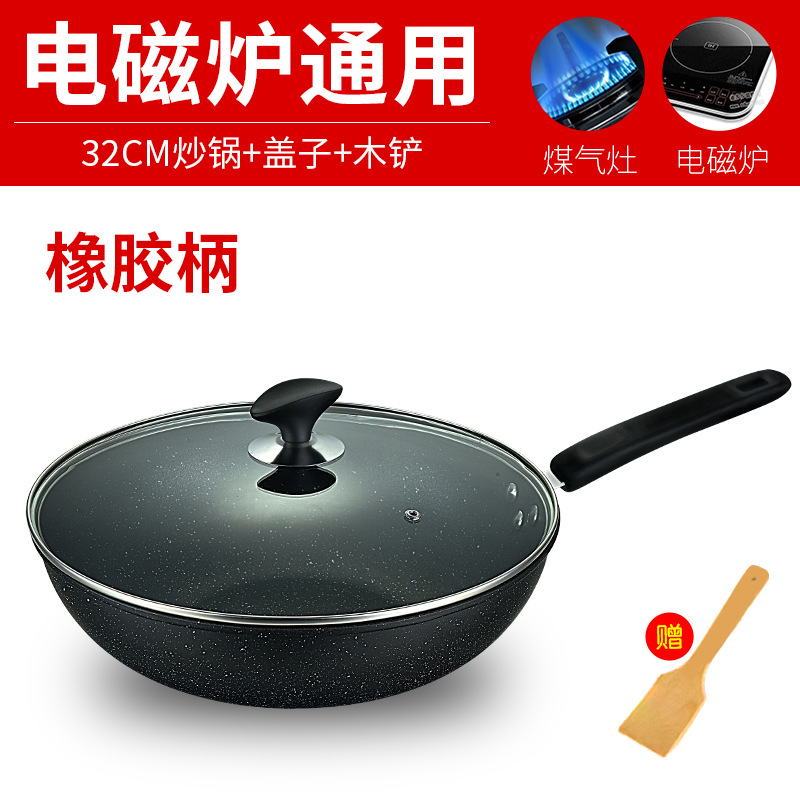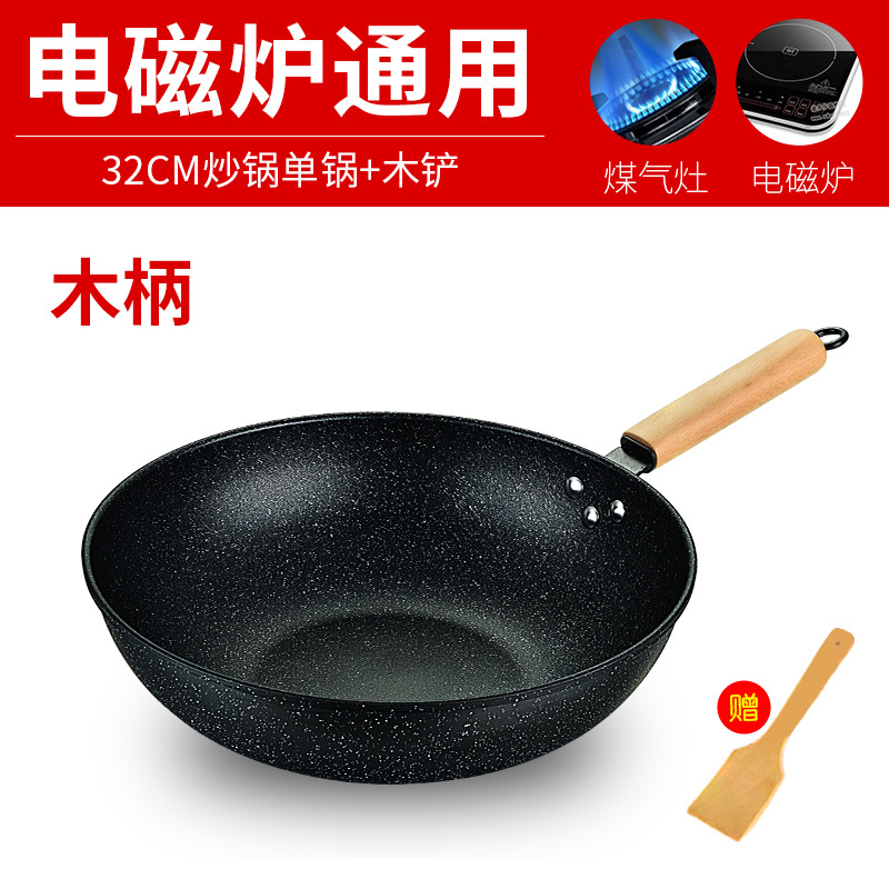 韩式麦饭石炒锅少油烟不粘锅家用电磁炉通用炒菜锅促销礼品锅具