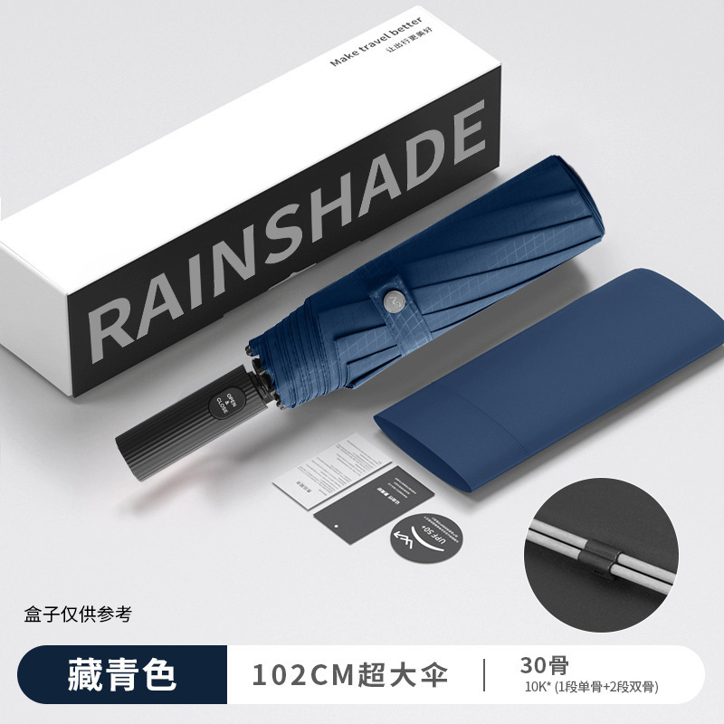 [超级旗舰]全遮光自动伞【藏青色30骨】-加强加固伞骨