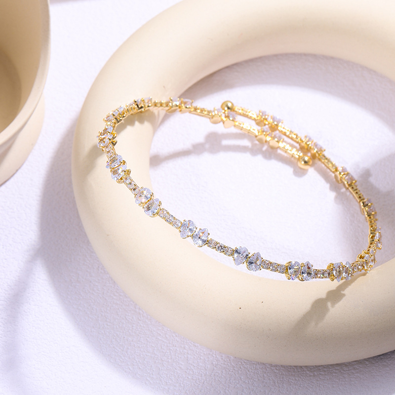 欧美镶钻锆石开口手镯网红个性几何手链ins时尚金属手饰